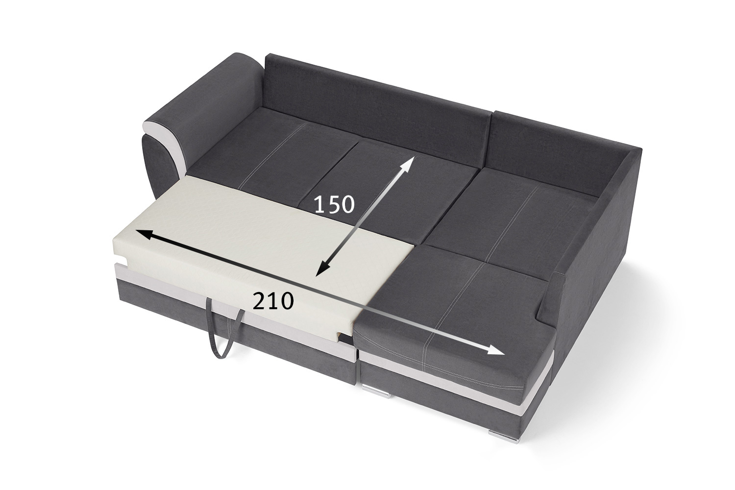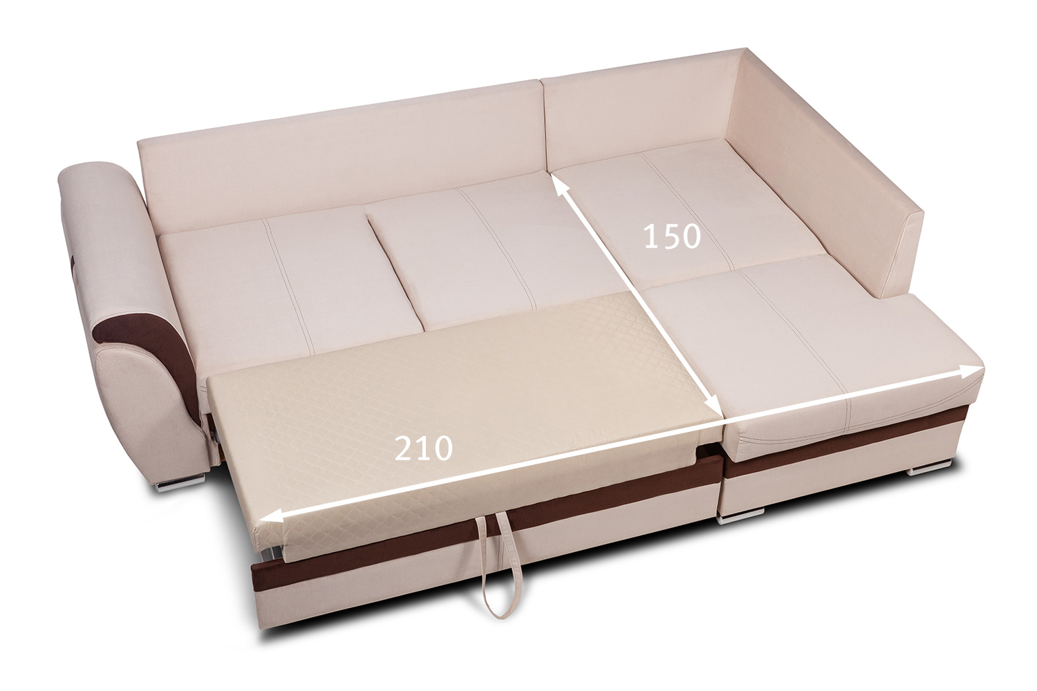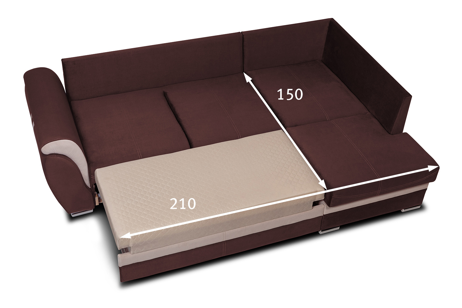 Габариты спального места – 150 х 210 см