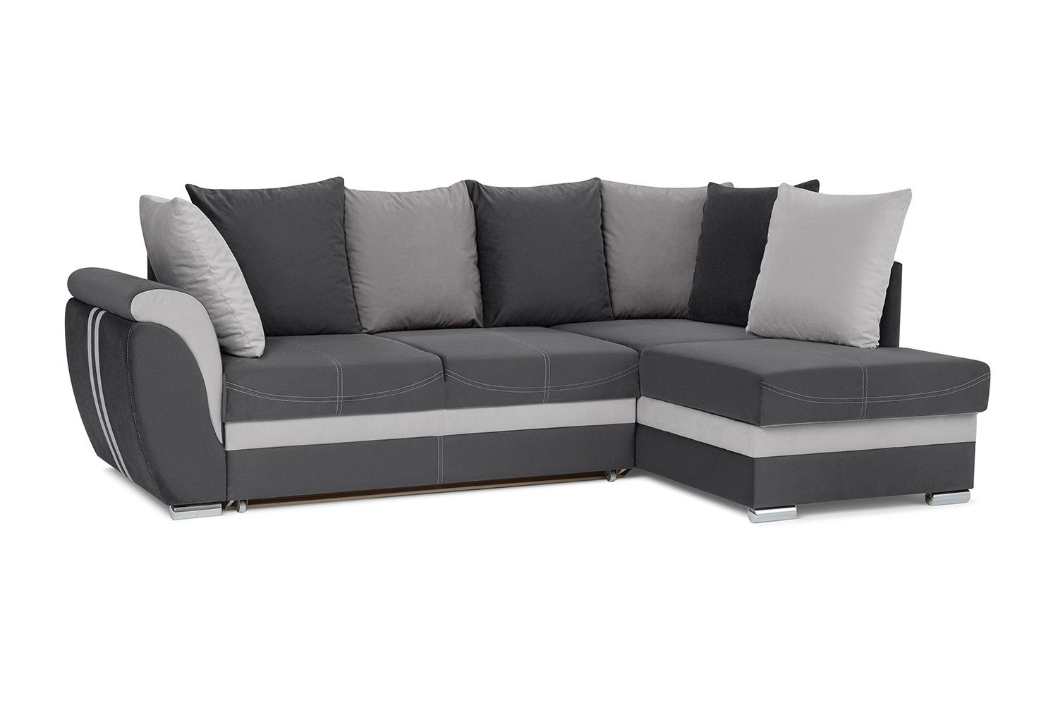 Большое количество декоративных подушек контрастных цветов